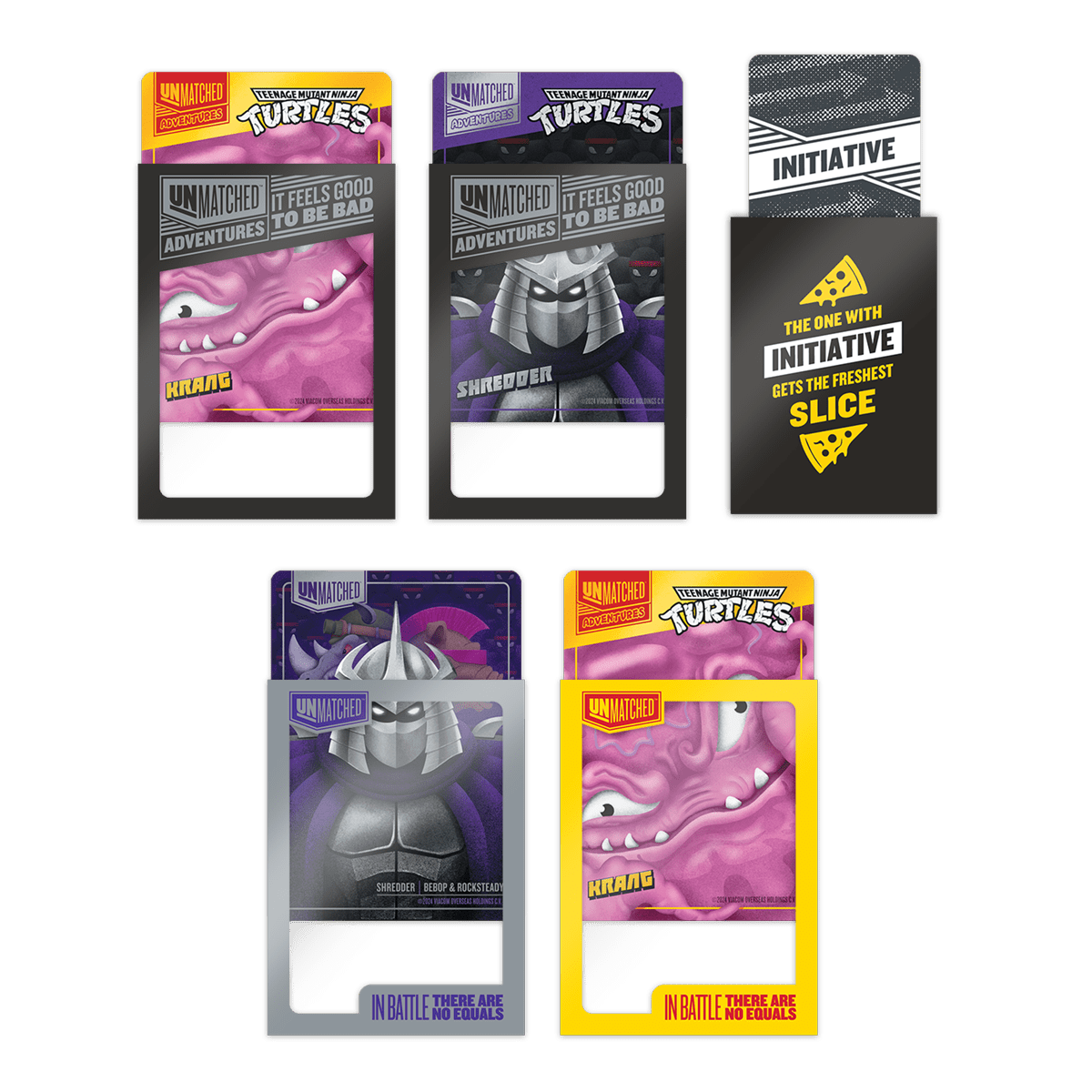 Includes colored hero sets (Turtles, Shredder, and Krang) and Villain cards along with mini-sleeves for small-sized cards.