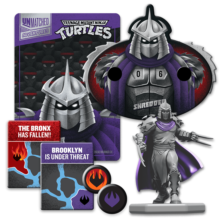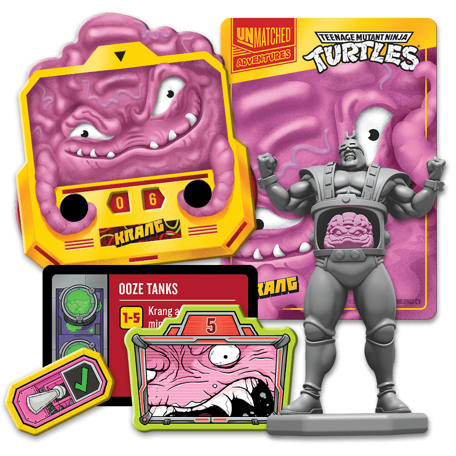 Unmatched Adventures takes the award-winning fighting system from standard Unmatched and adds a fun cooperative angle as 1 to 4 players work together to defeat one of two villains in the set. The Turtles face off against Shredder, as he sends waves of Footsoldiers across the Big Apple. Or dare to enter the Technodrome and match wits with Krang, who uses the unpredictable traps and gadgets from Dimension X. And keep an eye on the multitude of minions they can call on: Bebop and Rocksteady, Baxter Stockman, Leatherhead, and more!